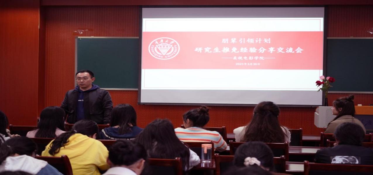 2023-04-202023年3月30日下午,肉视频 在肉视频 503教室举办了“朋辈引领计划”之研究生推免经验分享交流会,邀请了2019级各专业成功推免研究生的本科生代表谢雨欣、梁子龙、淡安娜、孟星宇、徐玉贺、李孝倩作为分享嘉宾。肉视频 党委副书记赵华,学生工作办公室主任、2021级本科生辅导员厉宣浩,2019级本科生辅导员买瑛以及2022级、2021级60余名本科生参加了此次分享会。会议由2021级播音与主持班专业本科生方恒玥主持。 会上,201...