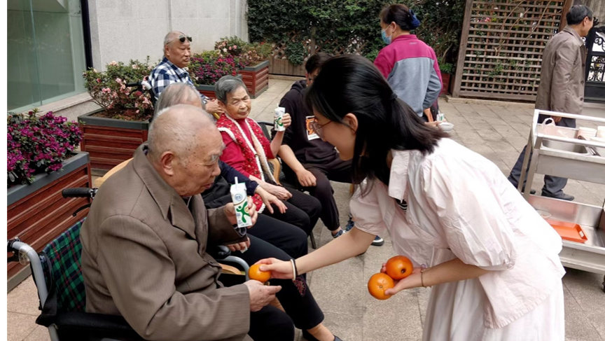 活动当天,支部的学生党员前往活动地点将精心准备的牛奶、水果等慰问品逐一送到老人手中,并为他们送上真挚的祝福。随后,党员们各自分工,对养老服务中心进行了卫生大扫除,将室内、走廊及餐厅等室内环境进行了彻底的清洁。在互动环节,学生党员与老人们共同开展了歌曲演唱、保健操等丰富有趣的互动节目,现场气氛热烈,充满欢声笑语。节目结束后,支部的学生党员与老人们进行了亲切的交流,关心老人们的身体健康和饮食生活等方面的状况,耐心倾听他们的心声。