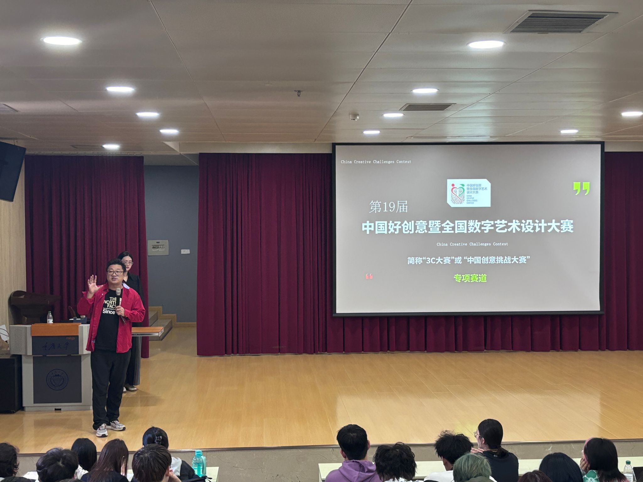师生创作相关情况。中国好创意暨全国数字艺术设计大赛组委会秘书黄润对赛事进行了详细介绍。