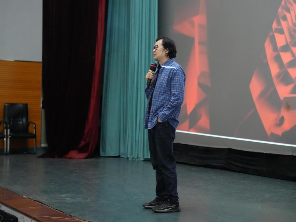 先锋电影制片厂负责人李冠一老师介绍了第五届先锋艺术电影展筹备情况。李冠一老师结合视频放映,回顾了前四届先锋电影展的精彩瞬间,并在最后强调本届电影展将为同学们带来一场身临其境的电影盛宴。