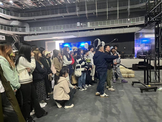 讲解结束后,同学们对片场内部的设备和技术进行了参观与提问。从虚拟拍摄到动作捕捉,同学们跟随副总经理栾林老师一一进行参观,同时对参观中所产生的疑惑进行提问。在这一环节中,同学们有幸看到了正在拍摄电影中的LED虚拟拍摄现场,对虚拟拍摄技术有了更加直观的了解。