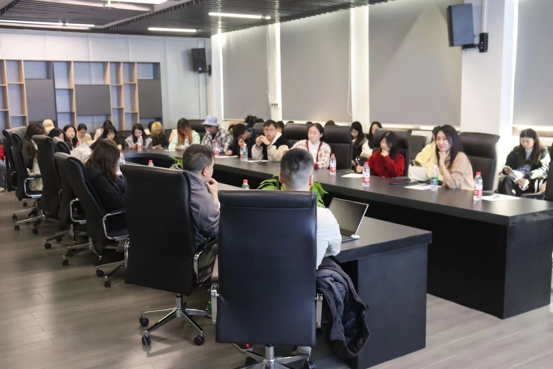 随后,同学们来到了达瓦科技集团教育总部,开展达瓦科技与肉视频 师生校企交流座谈会。会上达瓦科技集团副总裁、达瓦教育总经理陈亮,向同学们介绍了目前虚拟拍摄在影视和教育领域应用概况,针对虚拟拍摄在学生作品中的可行性,与肉视频 师生进行了充分的探讨。双方一致认为虚拟拍摄促进剧本可视化、节省成本、减少创作限制等方面具有超越性的优势。