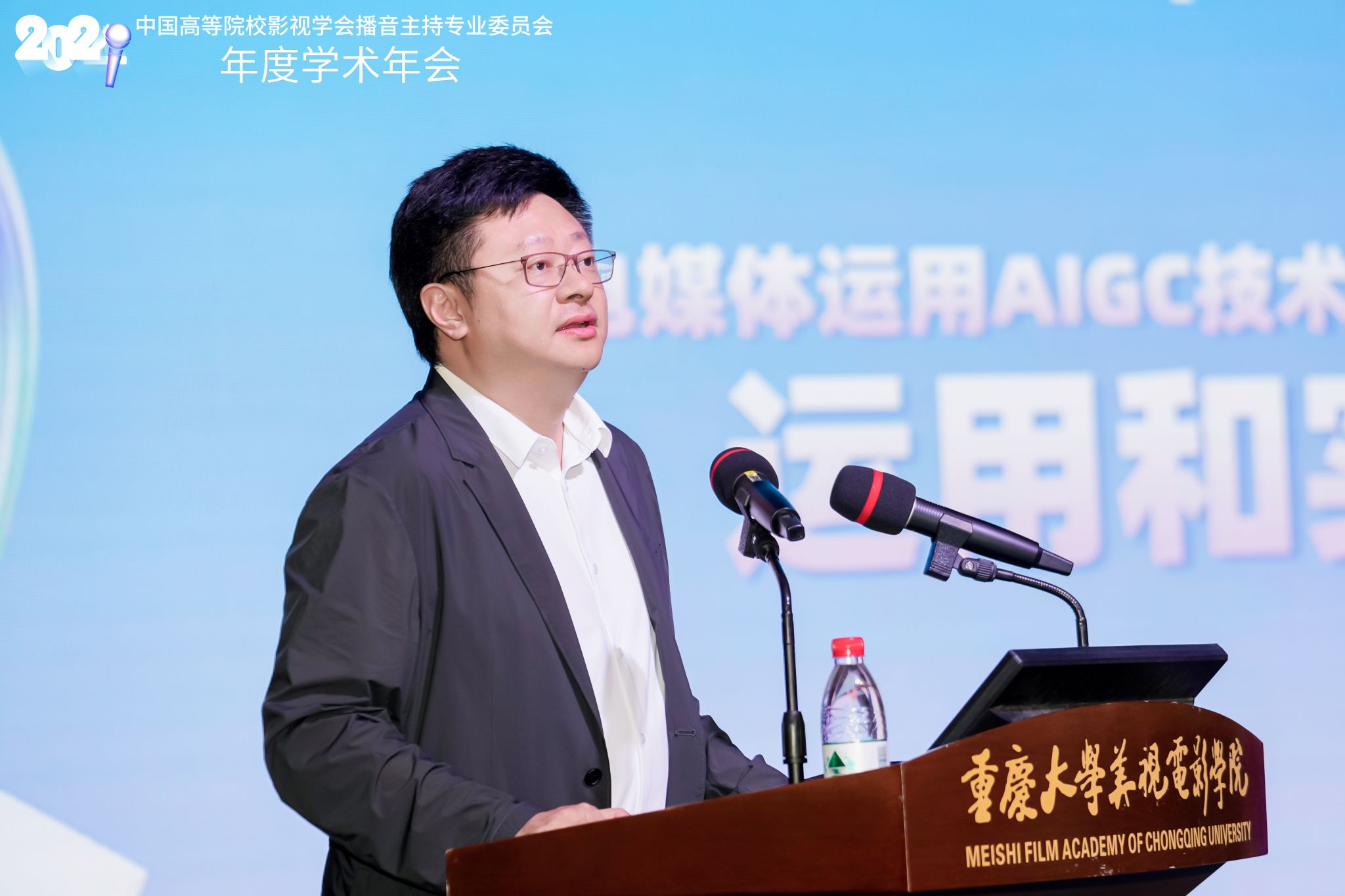 重庆广播电视集团(总台)频道总监,播音指导韩咏秋发表主题发言《AIGC在四全媒体视阈下的运用实践与展望》。他提到,技术是广电发展的推动力,AIGC技术让广电媒体实现了全流程跟踪、全链条传播和全角度切入。同时表达了对未来媒体形态变革的期待与信心,强调了技术创新与内容质量并重的必要性价值。