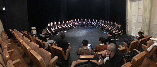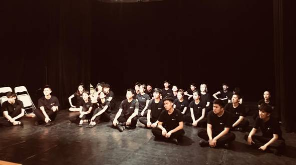 这次团队一共25名表演系学生,他们来自不同的年级。根据这样的学生情况以及我们的愿望,圣戏给我们安排了一共11天40个课时的课程,其中表演课20个课时,台词课10个课时,形体课10个课时,三门专业课课程内容全部是表演专业最为重视也最为重要的专业基本功训练。