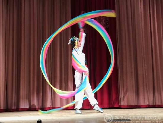 赵倩副教授的川剧身段展示和讲解别具特色,而一个多小时的演出节目融川剧唱腔、身法、器乐、绝活儿于一体,让孔院师生耳目一新。圣安娜大学教授芭芭拉(Barbara)观看节目后说,这次看了中国的川剧表演,觉得很精彩、很好看、很有特色!