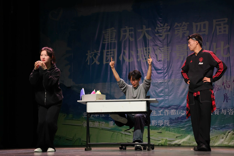 第四届校园心理情景剧比赛现场展演环节圆满结束。本次比赛营造了积极健康的文化氛围,为同学们提供了展示才华的舞台和探讨心理问题的平台。