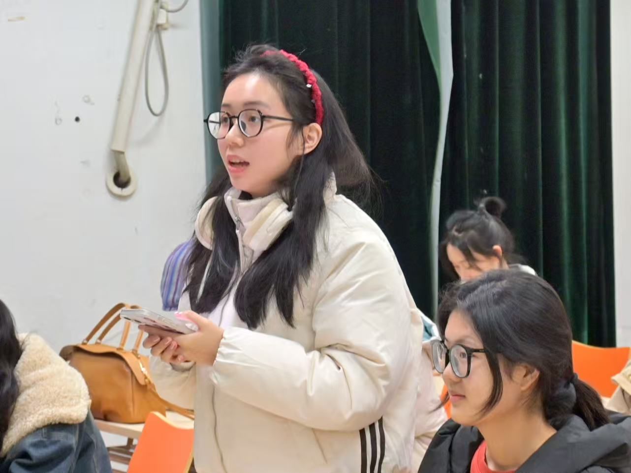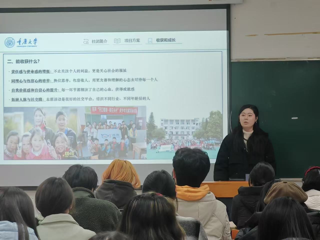 随后,2024级研究生郑湘蕊和2022级本科生熊佳琴分享了她们的志愿服务经历。她们的精彩讲述,展示了新时代青年积极参与社会公益、勇担社会责任的精神风貌,以实际行动诠释了青年学生的责任与担当。