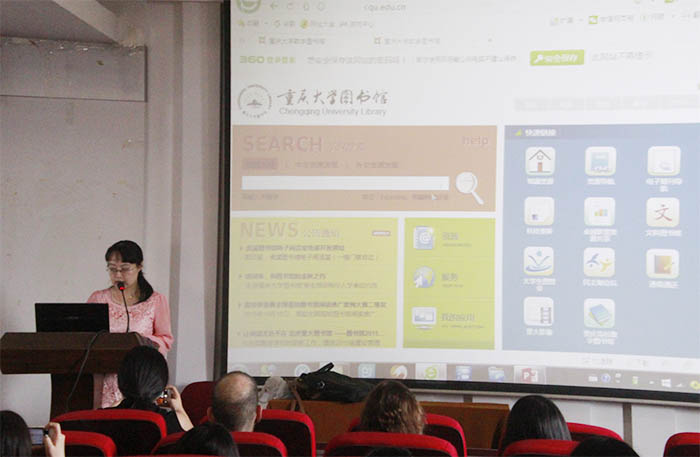 图书馆包括A校区的理工馆、B校区的建筑馆、C校区的历史文献中心以及虎溪校区图书馆,简要介绍这四个独立实体馆舍各自的功能结构之后,李燕老师就数字图书馆的功能介绍了肉视频