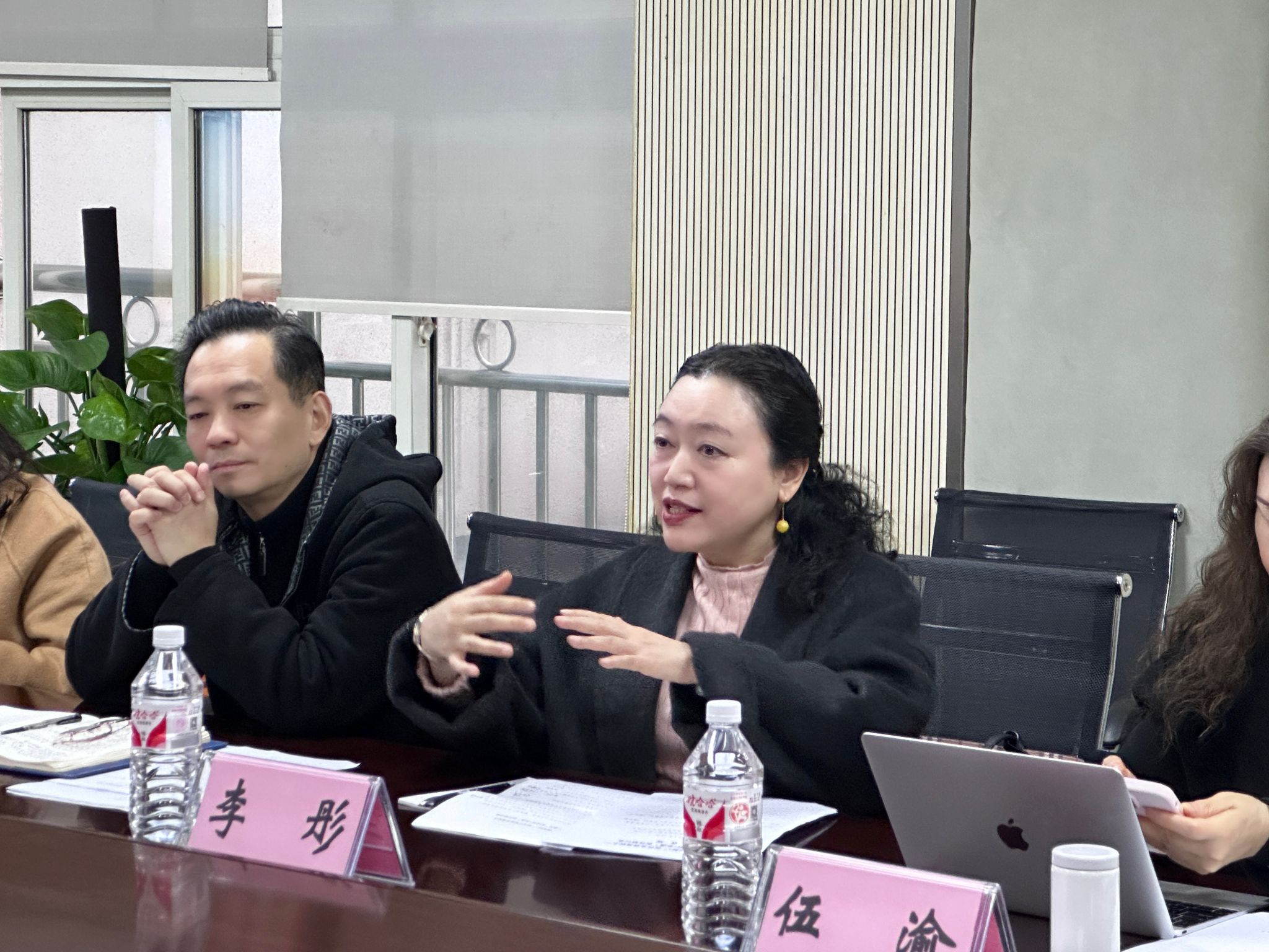 副院长黄鹏,数智影视创研中心主任杨尚鸿,表演系主任王希、副主任刘静,播音系主任张晓玲,文学系副主任鲜佳和教师魏珂、梁璐璐、黄哲敏参加研讨座谈会。