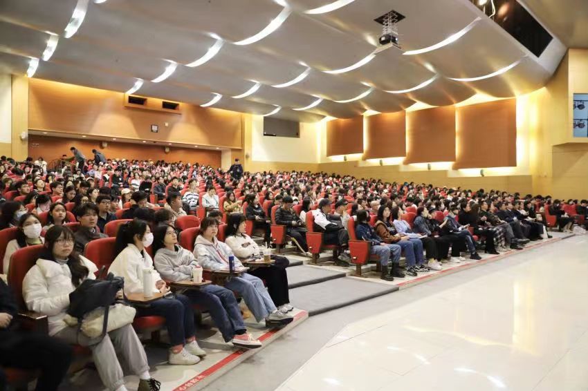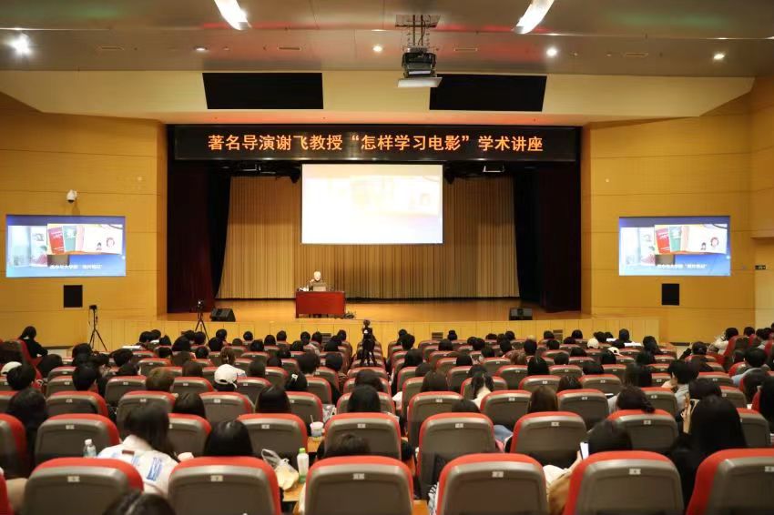 副院长范倍教授的主持下正式开始,全场近700名师生听众以最热烈的掌声欢迎谢飞教授到来。作为中国第四代导演的代表人物、电影教育的名家大师,谢飞导演的莅临与经验分享,为广大师生带来了一场难得的电影知识盛宴。